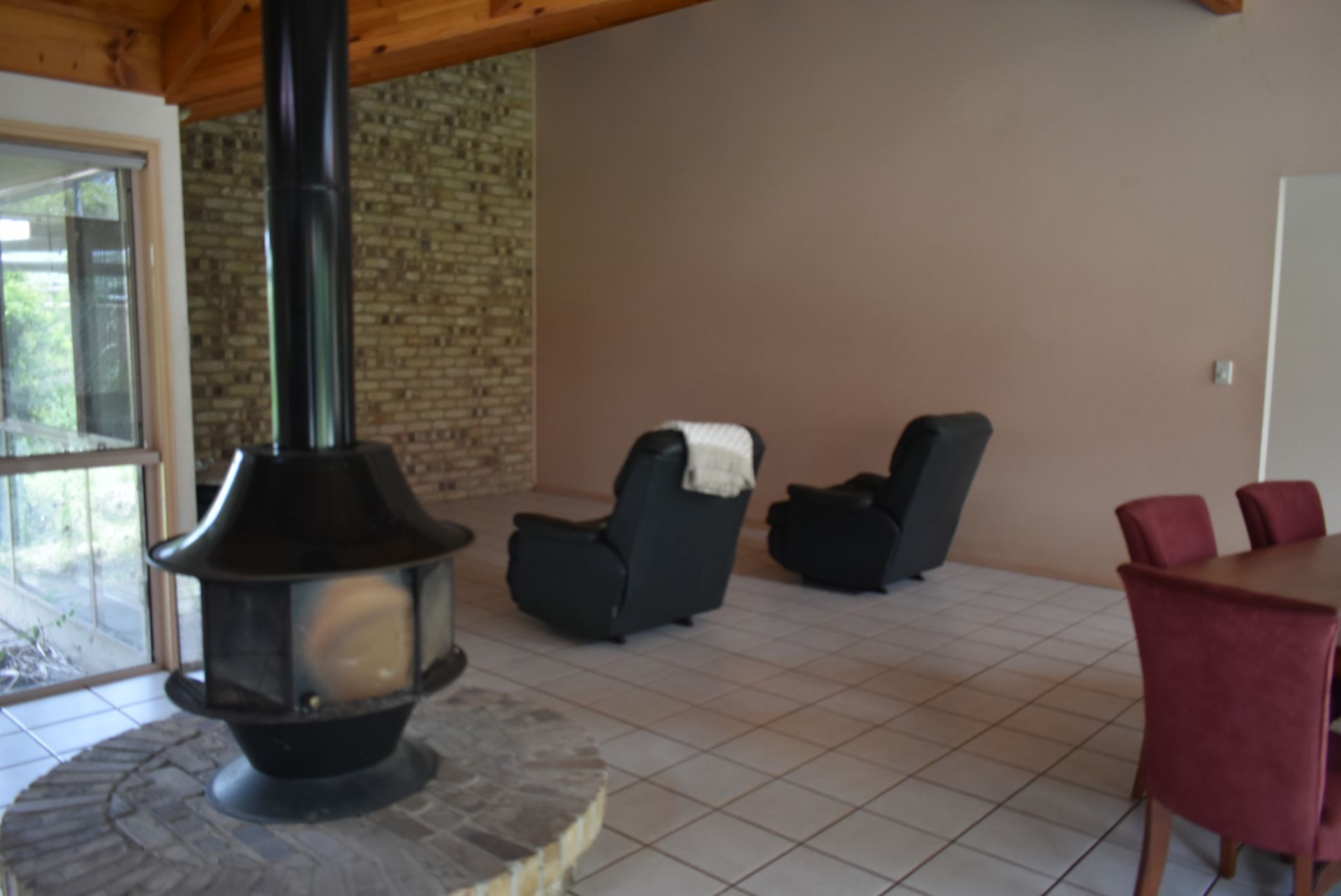 Large family/dining/living room with central glass fireplace great for those cosy evenings and air con unit for when the sun is hot.