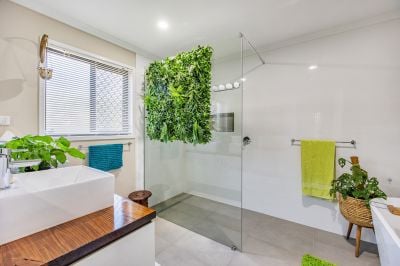 • Gorgeous modern main bathroom with feature wall, deep bath and generous sized shower.